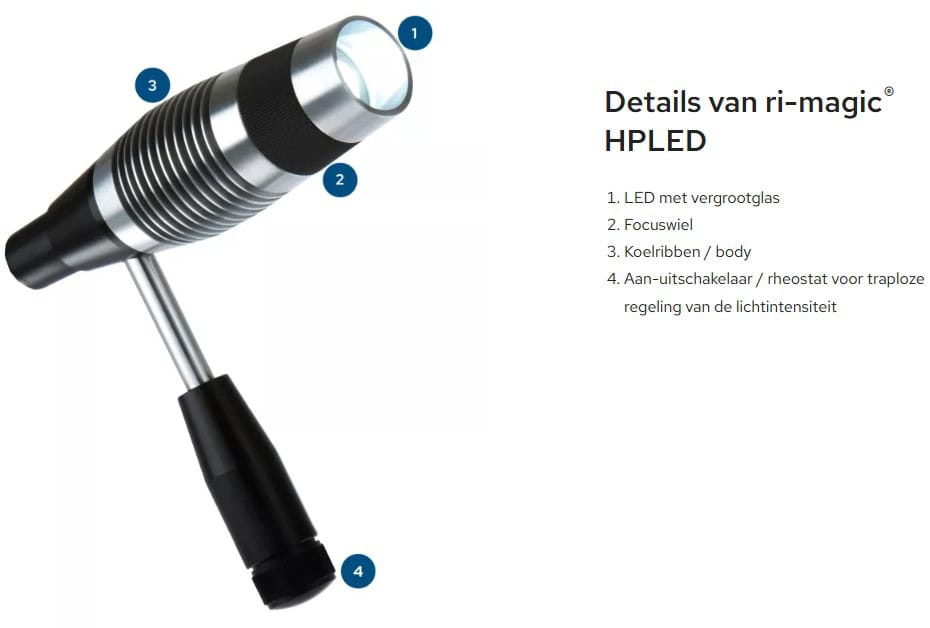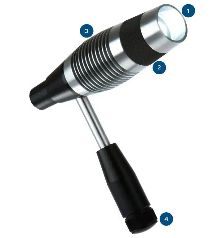 โ Eenvoudig te gebruiken handvat met rheostat voor oneindig variabele regeling van de lichtintensiteit.
