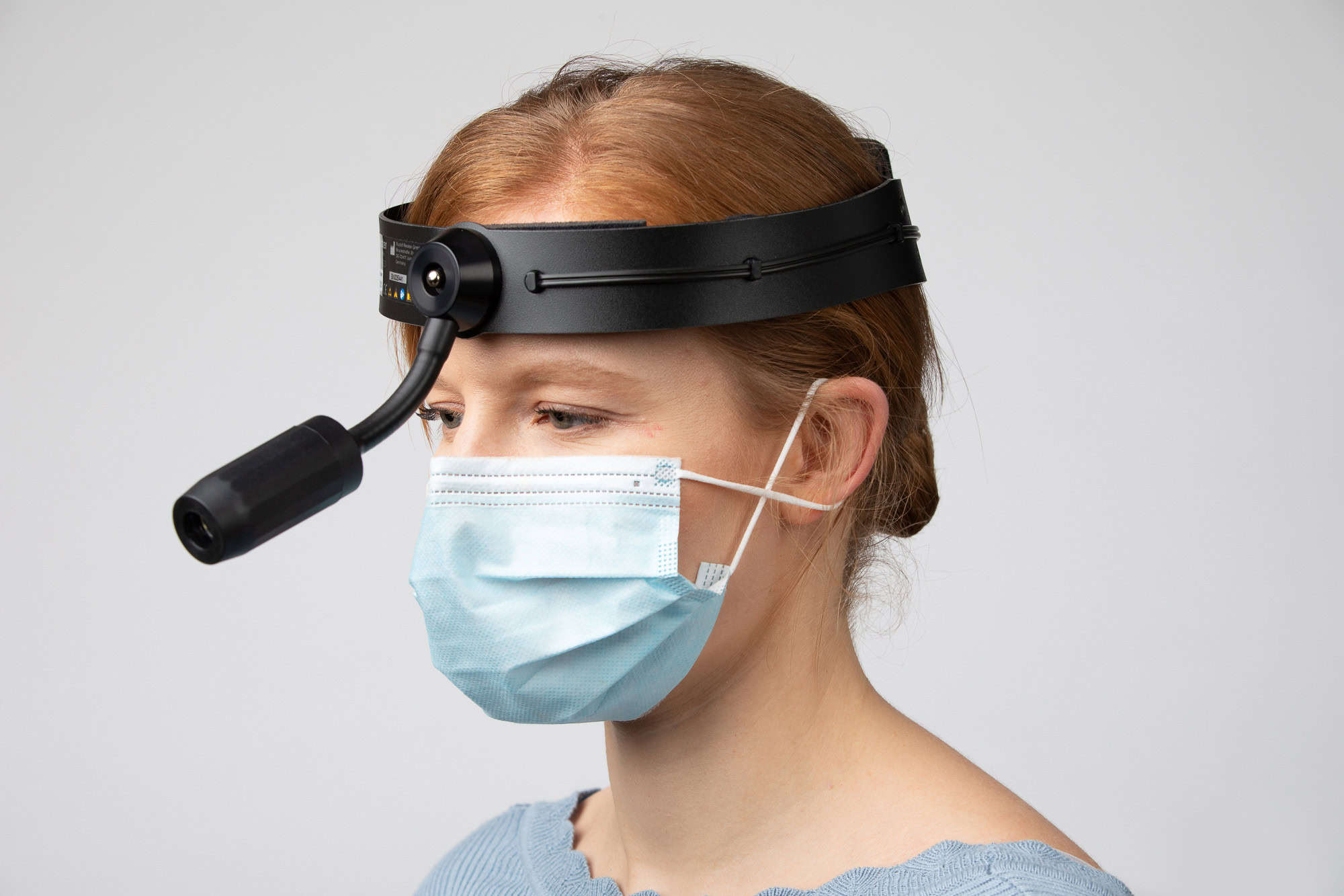 De hoofdband is traploos verstelbaar en biedt, zelfs na langdurig gebruik een hoog niveau van draagcomfort voor beoefenaars zonder vermoeiende werking. De hoofdband met geรฏntegreerd batterijcompartiment kan naar keuze worden besteld voor lithium CR 123A-batterijen of NiMH-batterijen met plug-in lader 230V / 120V.