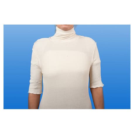 Een fijne, zeer dichtgebreid hemd uit 100% ongebleekte katoen vervaardigd. Het vest heeft een gerimpelde structuur en de grote elasticiteit zorgt voor een goede pasvorm en bewegingsvrijheid. Het hemd is enigszins waterafstotend door het ongebleekte katoen, daarnaast geeft deze natuurlijke stof het hemd ook een hypoallergene kwaliteit en dus een zeer goede verdraagzaamheid. Het wordt gebruikt bij starre steunverbanden als basislaag. Ook kan het hemd worden gebruikt als overtrek bij zalfverbanden. Voor dermatologie kan het hemd ook uitstekend gebruikt worden als afdekkende fixatie bij het gebruik van zalfverbanden of andere therapievormen. Ook beschikbaar voor kinderen. Zie hiervoor artikelnummer 00324043.