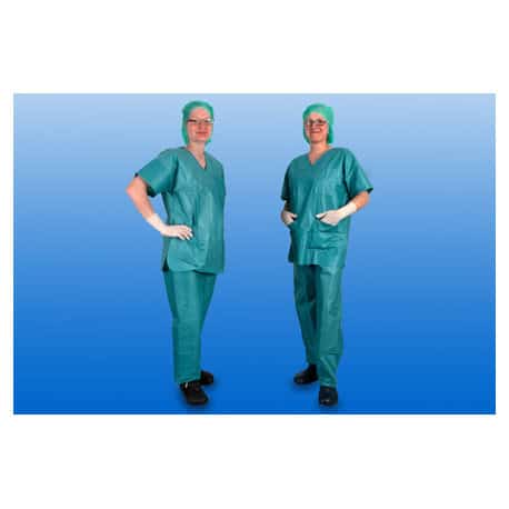 De NOBASUIT®-Broek van NOBAMED is een blauw / groene wegwerp broek voor operaties en verzorging. Ze dienen als scrubkleding en schone lucht kleding om de verspreiding van infectieuze stoffen tegen te gaan en zijn geschikt om éénmalig te gebruiken. De broek heeft twee achterzakken en een verstelbare taille met trekkoord. De drie-laags, anti statische fleece stof is ademend en comfortabel om te dragen. De broeken zijn per 10 stuks hygiënisch verpakt en gesteriliseerd. De kleding voldoet aan CE, DIN EN 5223-1- en DIN EN ISO 20417.