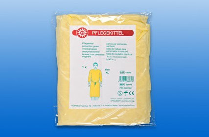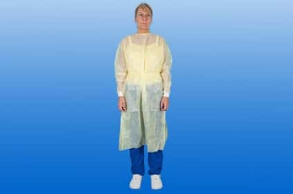 De gele verpleegkundige jas is gemaakt van non-woven (polyethyleen)ย ย De voorkant en de armen zijn vloeistofdicht, dus kan het niet gepenetreerd worden door micro-organismen. De verpleegkundige jas is open aan de achterkant en heeft gebreide, elastische manchetten en linten voor dassluiting in de taille en bij de kraag. De Manchetten zorgen daarnaast voor een strakke pasvorm van wegwerphandschoenen en door het ademende materiaal van de achterkant is de jas comfortabel om te dragen. Door de gele kleur kan het speciaal worden gebruikt in de verpleging van een MRSA patiรซnt.