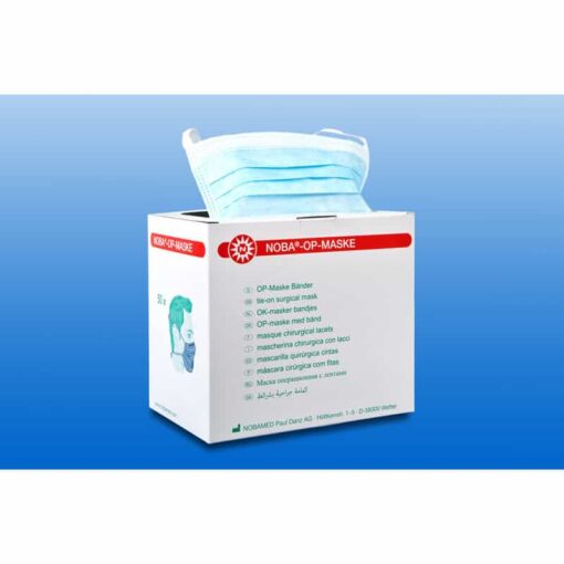 Blauwe, 3-laagse, hypoallergene mond- en neusbescherming volgens DIN EN 14683, Klasse II / R in diverse uitvoeringen met โฅ 98% filtervermogen en een zeer laag drukverschil. De maskers hebben ingebouwde neusstukken die kunnen worden aangepast aan de neusbrug en worden gekenmerkt door extra zachte randen en binnenvlies. De maskers zijn glasvezel- en latexvrij. De maskers worden per 50 stuks geleverd in een verpakking met een handige verwijderingsopening.