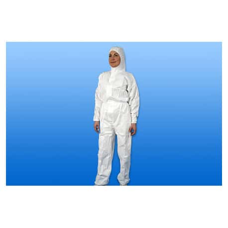 De overall ย heeft elastische manchetten en een ย capuchon met een rits aan de voorkant, maar geen schoenen. Door het uitermate zachte materiaal draagt deze overall zeer comfortabel. ย De overall is vloeistofdicht, slijtvast en pluist niet (deeltjesarm)