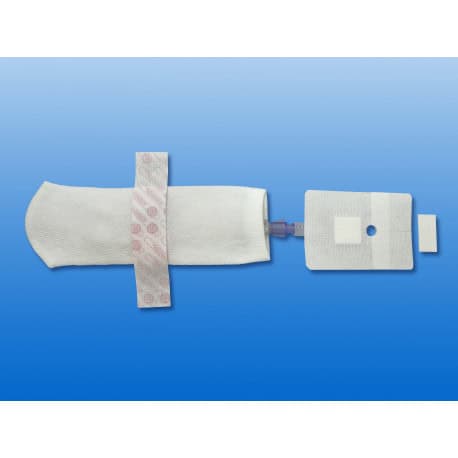 Steriel verband in de vorm van een beschermzakje voor dialysekatheters. Het product wordt gebruikt om katheters veilig en snel te fixeren en te beschermen tegen mechanische belasting en besmetting. Het zakje wordt vastgezet door middel van een zelfklevend vlies. Het onderste deel van het zakje wordt vastgezet door middel van de nonwoven strip. Beschermzakjes voor dialysekatheters zijn verpakt per 25 stuks.
