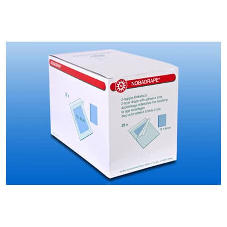 Het 2-laags afdek laken met plakstrips van Noba is individueel verpakt in een steriele verpakking. Het wordt gebruikt voor de steriele afbakening van het operatieveld. De buitenlaag bestaat uit een nat versterkte non-woven die extreem absorberend is en snel vloeistof kan opnemen. De binnenlaag is gemaakt van een zeer dicht materiaal dat ondoordringbaar is voor vocht, waardoor een betrouwbare barriรจrebescherming wordt geboden.