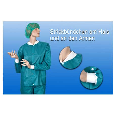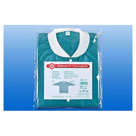 De NOBASUITยฎ thermische jack is een blauw/groene jas voor chirurgie en verzorging. Het thermische jack heeft een warme gebreide manchet en materiaalversterkingen in het nekgedeelte en twee steek zakken. Verder is het jack gemaakt van een 3-laags, antistatisch, ademend en deeltjesarm non-woven. Het product is hygiรซnisch verpakt en is past bij de NOBASUITยฎ broek.