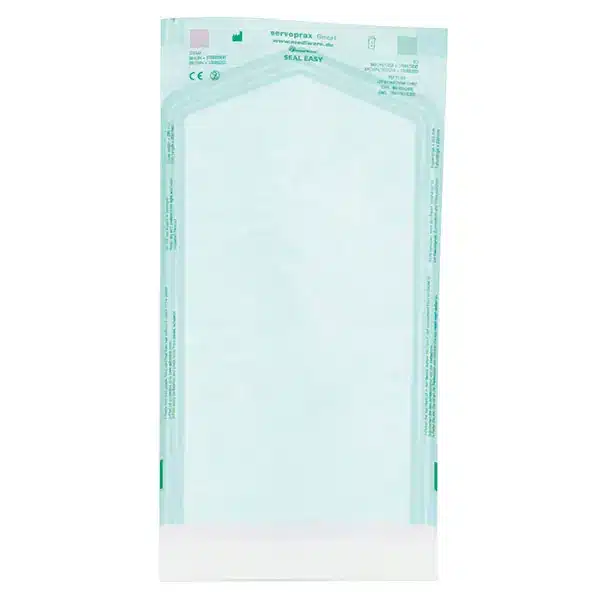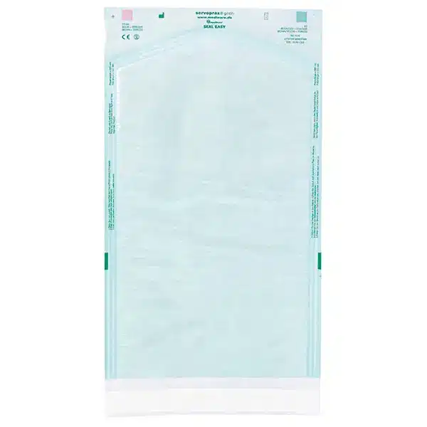 Seal Easy bags. Zelfklevende sterilisatie zakjes zonder vouw. Transparante zakjes met handmatig afsluitbare zelfklevende plakrand. Voorzien van stoom en EO gasindicator