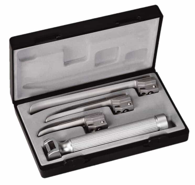 Riester ri-standaard laryngoscoopset Miller voor baby’s. Wordt geleverd in een harde beschermhoes met 3 bladen en 1 handvat. Ontworpen voor eenvoudige intubatie en goed zicht. Met 2,7V vacuรผmlichtbron, die verwijderbaar is aan het distale uiteinde van het blad. Wordt met een autoclaaf gesteriliseerd (134ยฐ C / 273ยฐ F gedurende 5 minuten) en de RVS messen hebben vrijwel een onbeperkte levensduur. Verkrijgbaar met handgrepen voor alkalinebatterijen of oplaadbare NiMH-batterijen.