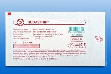 Betrouwbare en goed klevende witte steriele wond hechtstrips van NOBAMED. Deze hechtstrips (ook wel zwalustaartjes genoemd) kunnen snel en eenvoudig worden aangebracht en worden gebruikt om de randen van de wond bij elkaar te brengen in het geval van (verse) oppervlakkige wonden, schaafwonden en snijwonden. Ze kunnen ook worden gebruikt voor de behandeling van kleinere chirurgische wonden en zijn zeer geschikt voor in de EHBO koffer. Eรฉn verpakking bevat 50 steriele zakjes.