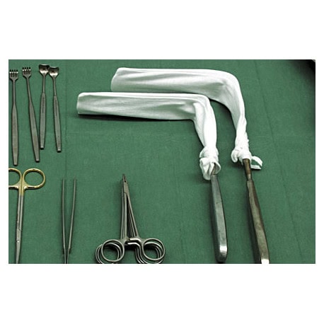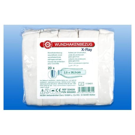 Ze zijn bedoeld voor eenmalig gebruik en worden vóór de sterilisatie op de wondhaken geplaatst om de instrumenten te beschermen. De afdekkingen kunnen tijdens gebruik op de wondhaken blijven zitten en verminderen zo de reflecties van het operatielicht op de wondhaken. Tegelijkertijd wordt gevoelig weefsel beschermd tegen de randen van de wondhaken. Één vouwdoos bevat 20 ingewikkelde haakhoezen.
