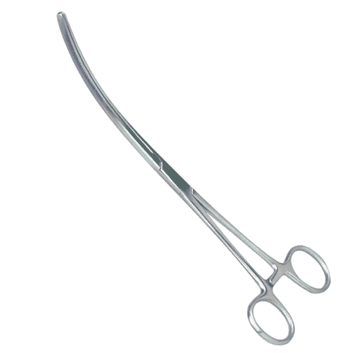Darmklemmen of darmtangen, zoals ze ook worden genoemd, zijn ontworpen als niet-verpletterende klemmen om het lumen van de darm tijdelijk af te sluiten. Deze darmklem heeft een gebogen klemuiteinde.