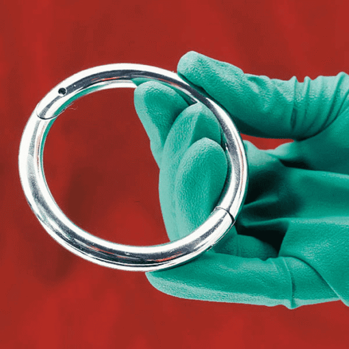 Sterke neusring voor vee. Voorkomt wroeten door vee in de grond. Kan gebruikt worden tijdens de handelingen aan het dier. Essentieel hulpmiddel voor boeren en dierenartsen. De ring wordt in elkaar geklikt met behulp van een tang.