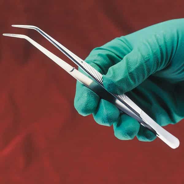 Chirurgisch tandpincet met geleidepen die voorkomt dat de werkuiteinden kruisen. Het bredere ontwerp en de iets kortere werkuiteinden maken een hogere aandrukkracht mogelijk dan bekend is van conventionele pincetten.