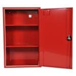 BHV kast. Deze stalen BHV kast biedt u voldoende ruimte voor het opbergen van uw BHV materialen zoals BHV verbandkoffer, helm, megafoon, afzetband etc, De legplank is verstelbaar. De BHV kast heeft bergruimte voor en dubbel opvouwbare brancard