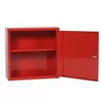 BHV kast. Deze stalen BHV kast biedt u voldoende ruimte voor het opbergen van uw BHV materialen zoals BHV verbandkoffer, helm, megafoon, afzetband etc, De legplank is verstelbaar
