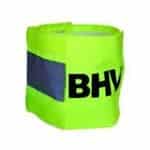 Een polyester mouwband, met klittenbandbevestiging in de kleur geel. Deze armband is voorzien van een opdruk BHV. Echter de armband kan ook worden geleverd met andere opdruk zoals: