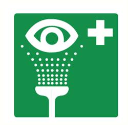 Pictogram oogdouche. Een Vinyl sticker metย pictogram oogspoeling / oogdouche. Leverbaar in diverse afmetingen. Conform ISO 7010