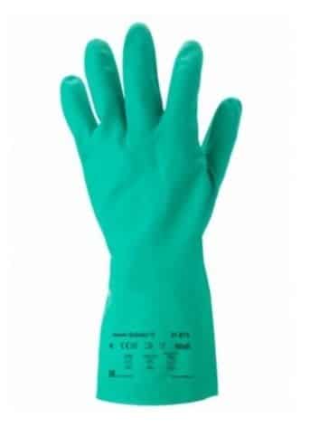 Gevlokte nitrilhandschoenen met zandkorrelreliรซf voor goede grip en vingergevoeligheid bij behandeling van natte voorwerpen. Goede bescherming tegen alle veelgebruikte oplosmiddelen en bestand tegen abrasie. Geschikt voor bescherming tegen chemicaliรซn, in het bijzonder oplosmiddelen, zoals citroenzuur, ethyleenglycol, fosforzuur, natriumhydroxide, salpeterzuur, tetrachloorethaan en zoutzuur. Geschikt voor (petro)chemische nijverheid en voedingssector Antistatische eigenschappen volgens EN1149 en siliconenvrij.