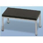 Het voetenbankje model FA-2000/1 heeft een verchroomd frame en poten met 490 x 320 x 25 mm zwarte polyurethane gecoate treden.