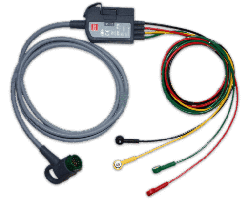 Deze LIFEPAK ECG kabel met 4 vaste draden is geschikt voor gebruik met LIFEPAK defibrillatoren. Indien een 12-kanaals ECG registratie gewenst is, dan is een extra kabel met 6 draden nodig. Deze 6-draads kabel wordt dan eenvoudig naast de 4-draads kabel geklikt. (Artikelnummer LP11111-00023)