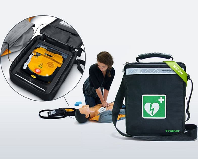Door de praktische draagtas kun je, in combinatie met een tablet en de TabletAED applicatie, op realistische wijze oefenen met vrijwel iedere bekende AED. Dit maakt het zeer voordelig, omdat het aanschaffen van meerdere verschillende merken AED’s nu verleden tijd is.