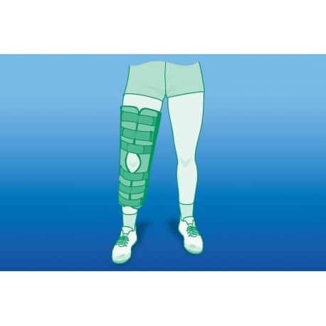 Deze mantelvormende spalk is geschikt voor gebruik na postoperatieve breuken. De spalk ontlast het been en het gewricht bij ontstekingen . De spalk heeft een kniebuiging van 15ยฐ De sterkte van de buiging kan individueel afgesteld worden. De spalk is driedeling uitgevoerd en heeft een patella opening. De spalk is geschikt voor benen met verschillende omvang en wordt met klittenband gesloten. De circa 10mm dikke universele spalk is gemaakt van hoogwaardig foam en aan de binnenkant voorzien van zeer zacht katoen. Leverbaar in 6 uitvoeringen. Junioir en XS t/m XL Klittenbandsluiting met plastic gespen Spalk is 10 mm dik Patella opening Afstelbare buiging Wasbaar op 30 graden