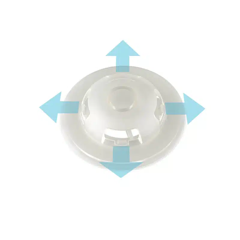De stijve, verhoogde koepelklep van de Chest Seal zorgt voor een eenrichtingsluchtstroom uit de borstholte, ongeacht de uitgeoefende druk. Grote zijopeningen minimaliseren interne obstructie door bloedstolsels of zacht weefsel. Of het nu in transport is of in de aanwezigheid van zware kogelvrije vesten, de TRUFLOWโข ventiel zal blijven ventileren.