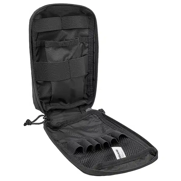 In noodsituaties kan de tas, ย met 2 ritsen, ย snel worden geopend hierdoor is directe toegang tot de inhoud mogelijk.. In de binnenzijde van de tas bevinden zich diverse elastische lussen en compartimenten om de benodigde medische materialen georganiseerd en veilig op te bergen. ย De IFAK tas heeft een zeer flexibele indeling wat het mogelijk maakt de tas aan te passen aan specifieke behoeften ย en wensen.