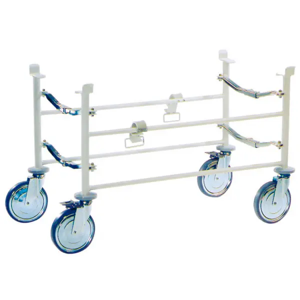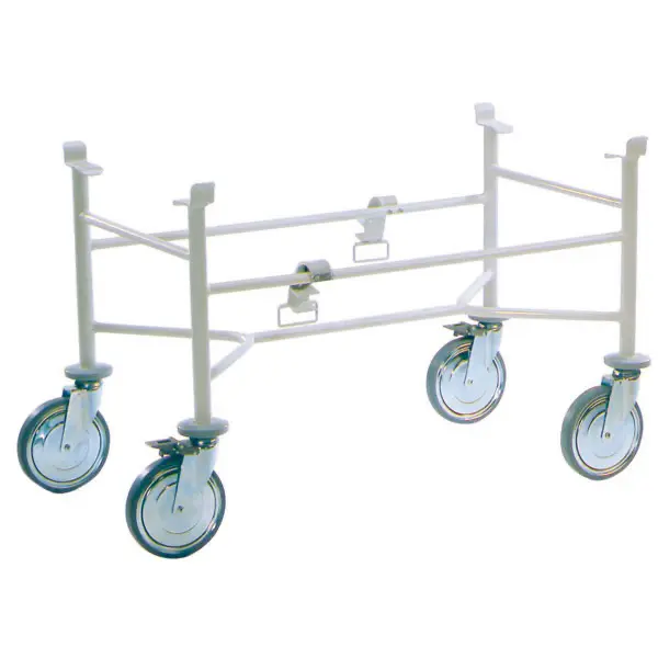 Onderstel ย voor ย brancards.ย Dit buizenframe is gemaakt van hoogwaardig, gepoedercoat staal en is uitermate stabiel, Een zeer stevig uitgevoerd chassis volgens de norm DIN 13034. Een soepel lopend onderstel voorzien van kogellagers met rubberen wielen met een ร van 200 mm. Tevens is het onderstel uitgerust met 2 zwenkwielen kruislings met afsluitbare dubbele stopinrichting.