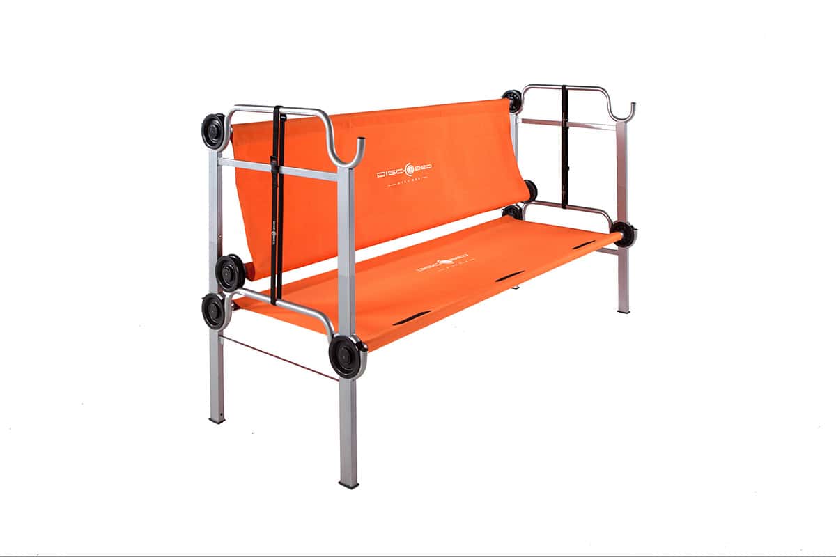 Hygiรซnische hulp. Het Disc-O-Bed heeft een unieke 600D polyester mat en is water-, schimmel- en vuilafstotend. Zorgt voor een stabiele en comfortabel ligvlak zonder dat een extra matras nodig is. De mat kan ook gemakkelijk worden verwijderd en indien nodig worden gewassen. Reserveonderdelen. We begrijpen de uitdagingen van een grootschalige gebruiken van producten als veldbedden. Het veelzijdige, modulaire ontwerp van Disc-O-Bedยฎ maakt het gemakkelijk om verloren onderdelen te vervangen zonder het hele bed moet worden vervangen.