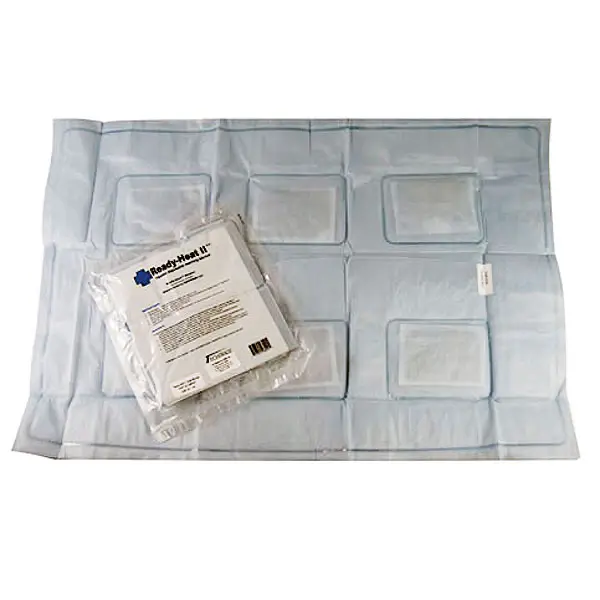 Thermische deken met warmtekussen. Een reddingsdeken deken met warmtekussens, welke, na het uitpakken, binnen 15 ย tot 20 minuten wordt opgewarmd tot minimaal 40 ยฐC en deze temperatuur ongeveer 10 uur vasthoudt.