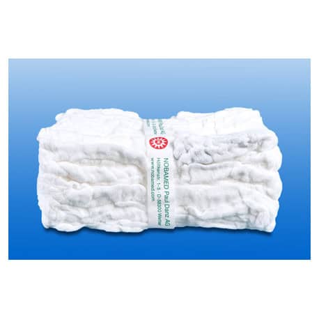 Deze NOBAMED niet-steriele, voorgewassen laparotomie spons is gemaakt van verbandgaas volgens EN 14079 type 20. Het bestaat uit 6 lagen gaas, die aan elkaar zijn genaaid en is voorzien van een rรถntgenchip en een lus van 30 cm. In operatiegebieden wordt de laparotomie spons gebruikt om bloed en secretie op te nemen of om zacht weefsel of orgaanweefsel te beschermen. De sponzen moeten vรณรณr gebruik worden gesteriliseerd. In รฉรฉn zakje zitten 20 schootsponzen verpakt.