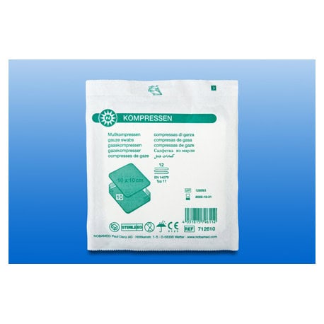 De katoenen 12-laags gaaskompressen van NOBAMED met naar binnen gevouwen, rafelvrije snijkanten, zijn gemaakt van gaas dat voldoet aan de eisen van norm EN 14079 type 17. De gaaskompressen zijn zeer zacht en hebben een hoog absorptie vermogen. Ze worden met de gevouwen kant naar boven in de steriele zakjes geplaatst, zodat de kompressen gemakkelijk uit het zakje genomen kan worden. 8 Steriele zakjes, elk met 10 gaaskompressen, zijn verpakt in een verzamelverpakking, die is voorzien van een handige uitneemgleuf. Bij 10 x 12,5 cm en 10 x 20 cm bestaat de verzamelverpakking uit 15 sets รก 10 kompressen.
