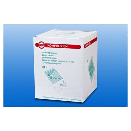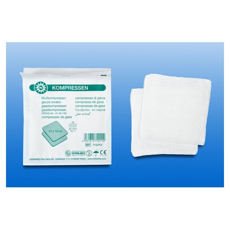 De katoenen 12-laags gaaskompressen van NOBAMED met naar binnen gevouwen, rafelvrije snijkanten, zijn gemaakt van gaas dat voldoet aan de eisen van norm EN 14079 type 17. De gaaskompressen zijn zeer zacht en hebben een hoog absorptie vermogen. Ze worden met de gevouwen kant naar boven in de steriele zakjes geplaatst, zodat de kompressen gemakkelijk uit het zakje genomen kan worden. 40 Steriele zakjes, elk met 2 gaaskompressen, zijn verpakt in een verzamelverpakking, die is voorzien van een handige uitneemgleuf.
