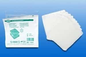 Leverbaar in 4 afmeting 16 laags De ingevouwen snijkanten zijn rafelvrij 100% katoen Zeer zacht materiaal Hoog absorptie vermogen Steriele sets van 5 stuks, 15 sets in doos.