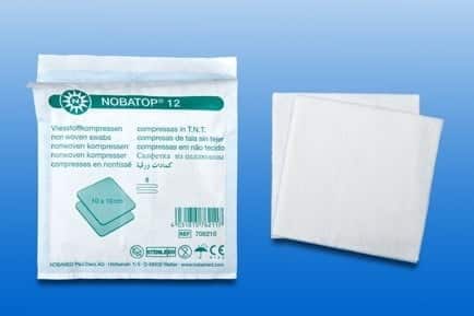 De steriele nonwoven kompressen welke zonder bindmiddelen zijn gefabriceerd en die 6 lagen gevouwen zijn, bezitten de opnamecapaciteit van een 12 lagen gaaskompres.Het materiaal is zeer zacht en daarom aangenaam op de huid. De kompressen zijn speciaal gefabriceerd voor wondbedekking. De steriele sets zijn verpakt in een afdelingsdoos met uitneem opening. – Leverbaar in 4 afmetingen