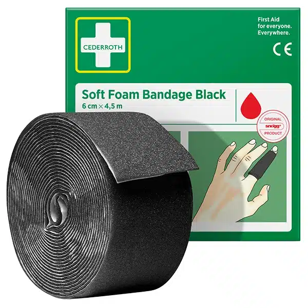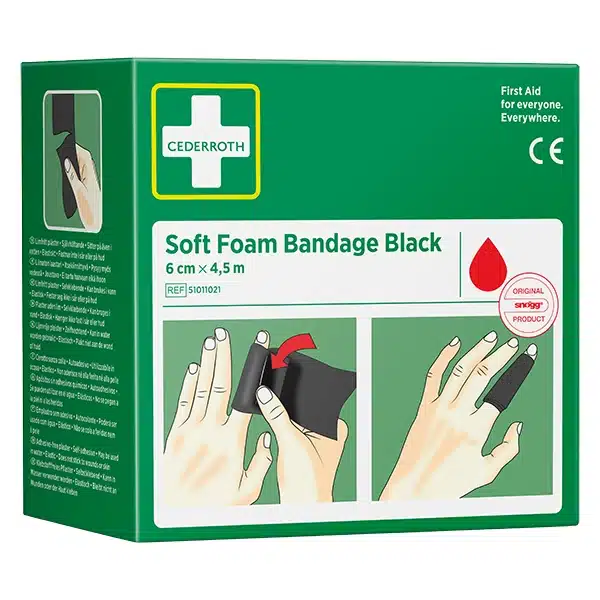 Voor de Cederroth soft foam bandage is een dispenser leverbaar. Met deze dispenseer kunt u de gewenste lengte voor de bandage afsnijden, Zie:Â https://arvem.nl/soft-foam-dispenser-snogg-rol-4-5mx6cm-haccp-kleur-blauw/