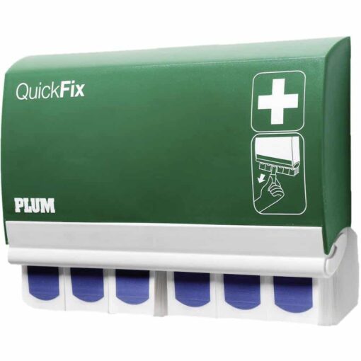 QuickFix pleisterdispenser van Plum QuickFix is een nieuw ontwikkeld pleisterconcept. De dispenser kan wordt aan de muur bevestigd en heeft ruimte voor twee pleisteraanvullingen.