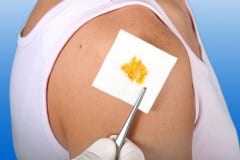 Het exsudaat wordt geabsorbeerd door de nonwoven (niet geweven) stof en de film voorkomt dat het kompres zich aan de wond hecht.