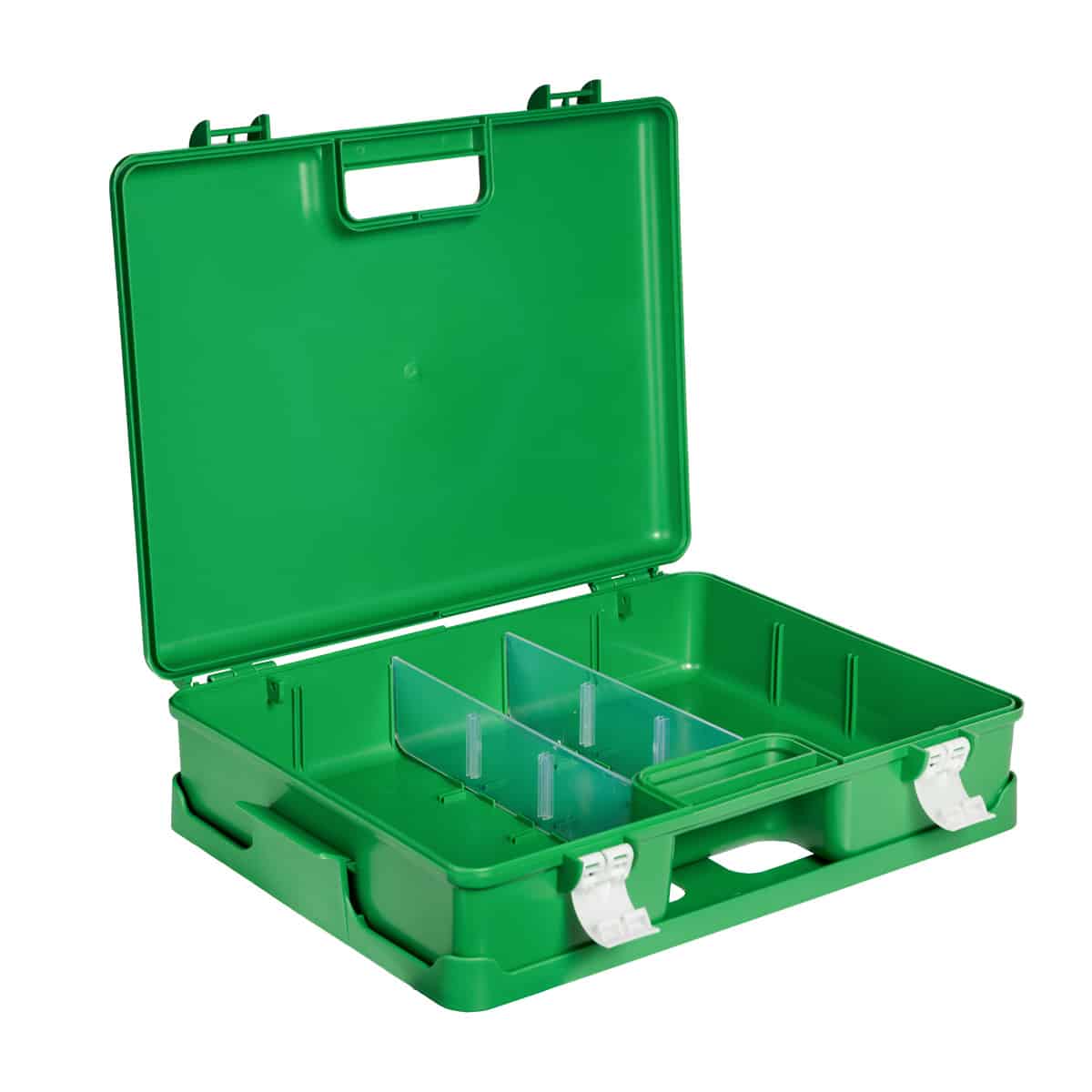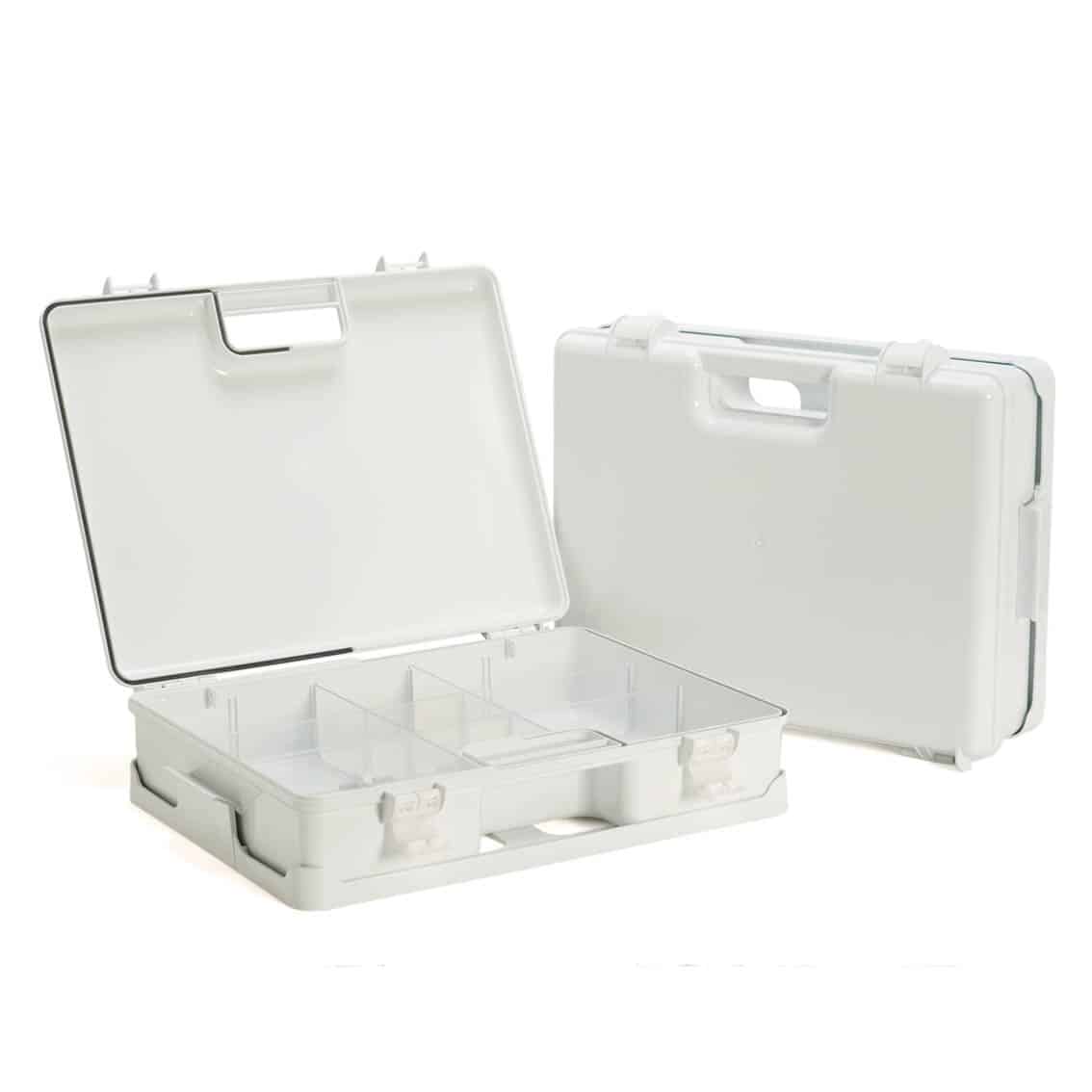 ABS-verbandkoffer, voorzien van muurbeugels, een handvat voor transport en sluiting met twee kliksluitingen. Lees meer…