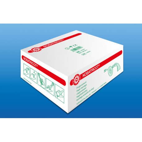 Gebruiksklaar verband voor het fixeren van wondverbanden aan hoofden. NOBATRICOTยฎ is niet steriel en wordt geleverd in doos van 10 stuks. Ook verkrijgbaar voor vingers en voeten.