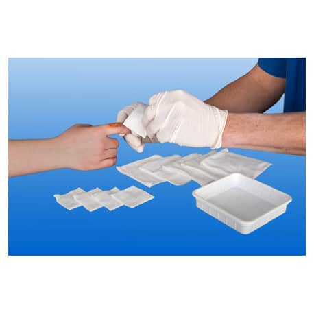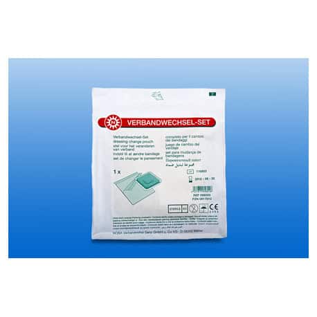 De verbandwisselsets zijn verpakt in een kunststof bakje, waardoor een steriele verbandwisseling mogelijk is. Eรฉn doos bevat 10 sets welke per stuk verpakt zijn.