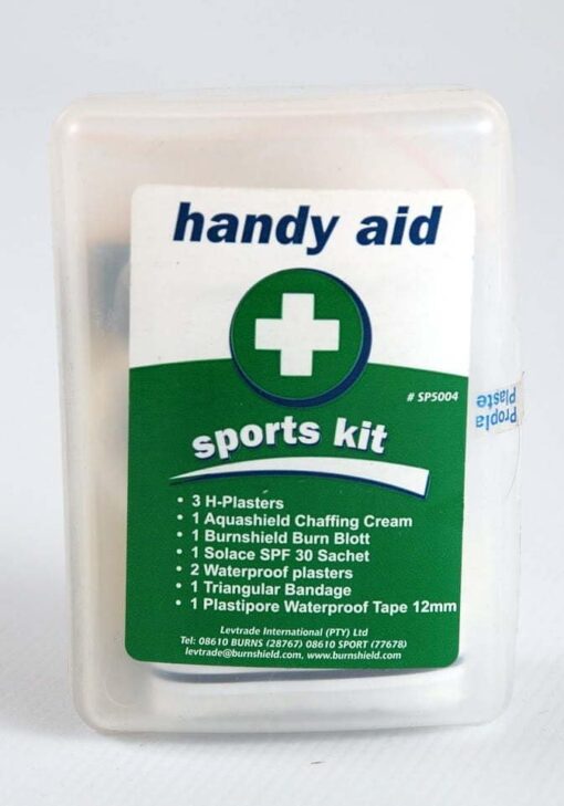 Handy Aid Kit โ€“ Eerste hulp bij sport Setje met middelen die uitermate handig kunnen zijn bij het sporten. Ideaal om mee te nemen in de sporttas. Wordt geleverd in een handig PVC doosje.
