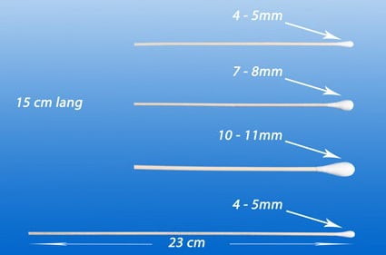 De niet-steriele wattenstaafjes met katoenen punt worden gebruikt om vloeistoffen aan te brengen.