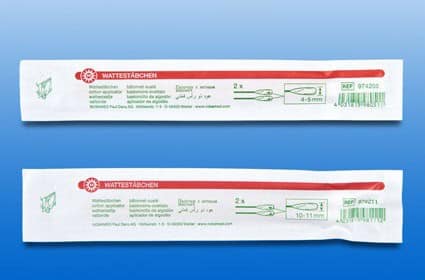 -Afmeting, 15cm lang, wattenprop maat 10 - 11 mm -Plastic drager -Verpakt per set van 2 stuks -Steriel -Artikelnummer: N974411