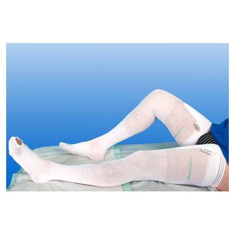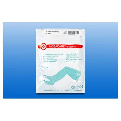 Door een speciale rondbreimethode hebben de NOBACAREยฎ-classic medische tromboseprofylaxe kousen (MTPS) beenlengte geen naden. Ze zijn voorzien van een inspectieopening bij de tenen en een gevormde hiel. De witte kousen hebben een duidelijke kleurcodering om de identificatie van de juiste maat te vereenvoudigen. Wegwerp meetlinten en applicatieposters zijn gratis verkrijgbaar. Eenvoudig verwijderbare controlestickers vergemakkelijken de chirurgische documentatie.