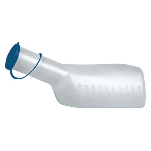 Urinaal voor mannen melkwit met afsluitdop. Eco uitvoering -Autoclaveerbaar tot 130 gradenย  -Met deksel -Inhoud 1 liter – afleesbaar -Houder los te bestellen -Omdoos 25 stuks -Grote aantallen op aanvraag ย