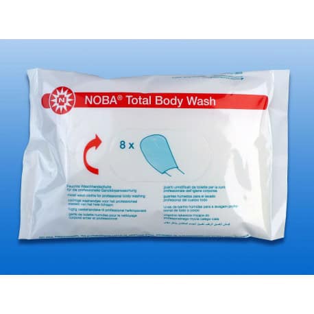 Vochtige washandjes professioneel wassen van het gehele lichaam met รฉรฉn systeem. -8 stuks handvormige washandjes met duim geรฏmpregneerd met een milde reinigings- en verzorgingsoplossing. -1 washand voor elke lichaamszone. -Verwarm aangenaam in de magnetron gedurende 40 seconden op 700 watt. -1 doos met 24 verpakkingen is genoeg voor 1 wasbeurt met 2 wekelijkse volledige lichaamswasbeurten.