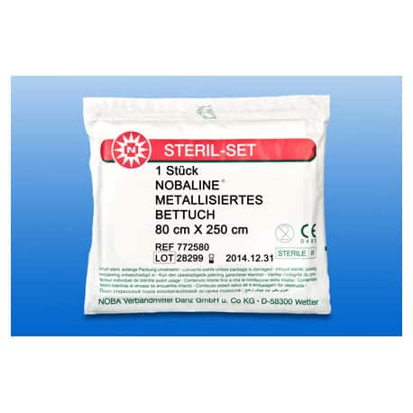 Dit steriele NOBALINEยฎ non-woven laken is met een laagje aluminium bekleed en hecht zich niet aan wonden. Het laken is individueel verpakt en wordt voornamelijk gebruikt voor de open wondbehandeling van grote brandwonden en schaafwonden op de intensive care. Het laken kan zowel voor normale als voor speciale bedden worden gebruikt.