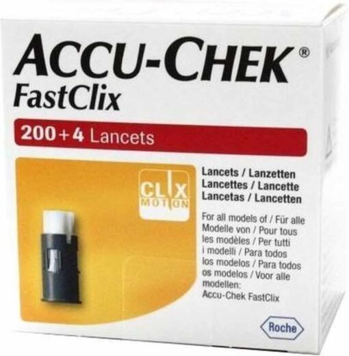 Losse lancetten voor de Accu-Chek Fastclix prikpen. Verpakt in een doosje met 204 lancetten.